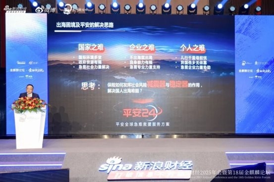 1月15日金融一线消息,由新浪财经主办的“第18届金麒麟论坛•金融新启航”今日在北京召开。平安产险党委副书记石合群出席大会,并发表题为《跨越山海 平安相伴》的演讲,就平安在守护国人出海、提供急难救援方面的思考和探索与大家进行交流。