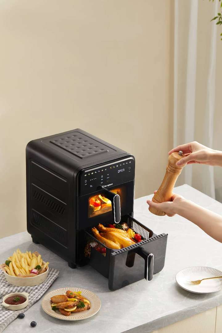在材质安全与加热技术上,西屋展现了其一贯的严谨态度。WKZ050采用了专利级的内外全金属箱体,摒弃了普通塑料内胆在高温下可能产生的异味与安全隐患,确保每一口食物都纯净安心,且经久耐用。加热系统方面,产品搭载了上下双重3D立体加热技术,配合720°全域热风循环系统,构建了一个无死角的热力场。无论是酥脆的炸物还是多汁的烤肉,热量都能均匀渗透至食材内部,无需翻面即可实现外酥里嫩的绝佳口感,真正做到了“烘烤焖炸,一机搞定”。