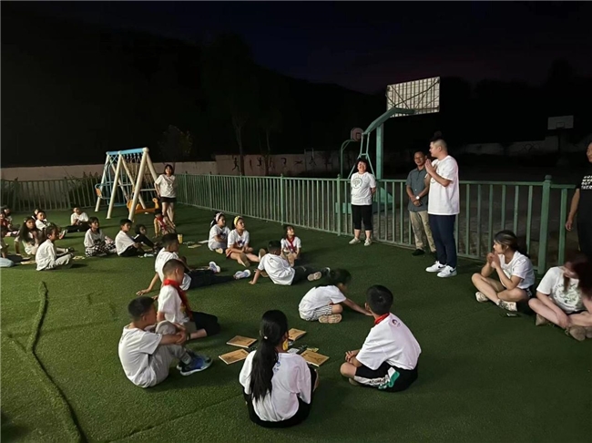 抵达校园后,校长的热情接待驱散了志愿者们的旅途疲惫,孩子们带着羞涩与期待陆续集结。志愿者们早已备好崭新的被褥,帮孩子们分宿舍、铺床褥、整内务,用细致的关怀让乡村孩子感受到家一般的温暖。傍晚的校园被温柔笼罩,开营仪式在草地上悄然开启,吉他声伴着孩子们纯净的歌声飘荡,一张张笑脸在暮色中格外明亮。