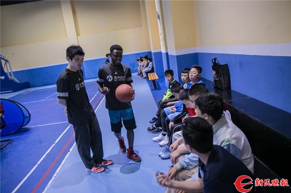 图说:英米篮球俱乐部的外教在与孩子们交流 新民晚报记者 李元春 摄